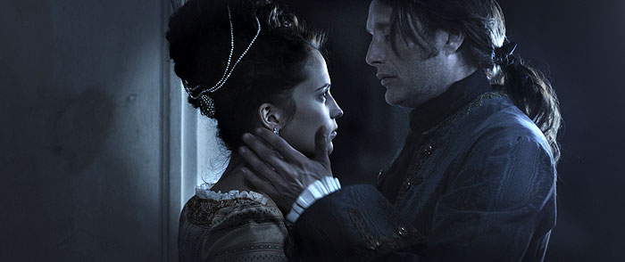 Příjemnější podívanou je historické melodrama Královská aféra, kde hraje doktora Johana Strunsee, který má osudový vztah s mladou královnou Karolinou Matyldou Hannoverskou. Film je díky uhrančivému herectví nejen Mikkelsena velkým zážitkem pro citlivé diváky. Ačkoliv se zapsal do dánské kinematografie jako jeden z nejdražších filmů historie, na Hollywoodské poměry je celkem minimalistický, což ještě umocňuje milostnou linii, která je v podání Mikkelsena a mladičké krásky Alicie Vikander zcela uvěřitelná. Film se díky české koprodukci dostal i do našich kin a díky němu měli čeští diváci možnosti vychutnat si umírněné Mikkelsenovo herectví naplno.
